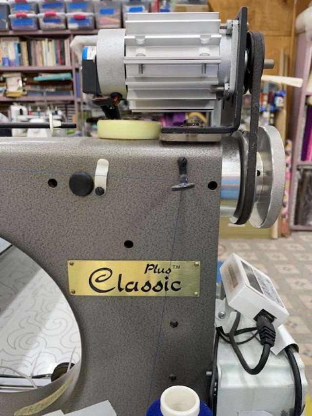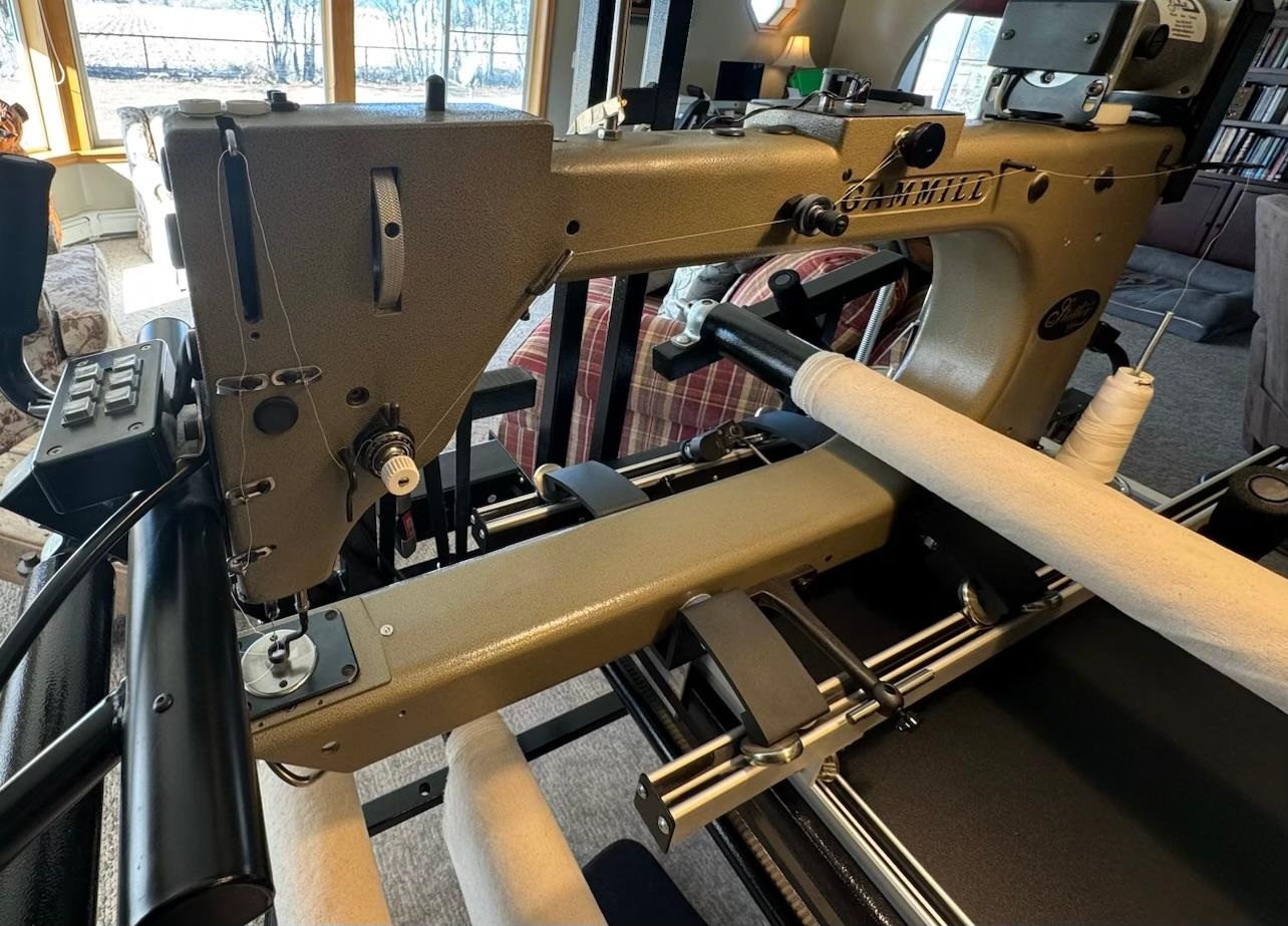 This is a 2008 Gammill Classic Plus (26 inch throat) machine on a 14 foot table with a Statler computerized system. Included are – stitch length regulator, Breeze Track system, zipper leaders, assorted hopping feet, bobbin winder, and other accessories. The Statler was added to the machine in 2018 and is running Creative Studio CS 7.5.4 with Mod G on Windows 10 and includes all hardware to mount computer, monitor, etc. Purchaser is responsible for take down, pickup, transportation, re-assembly and all associated costs.