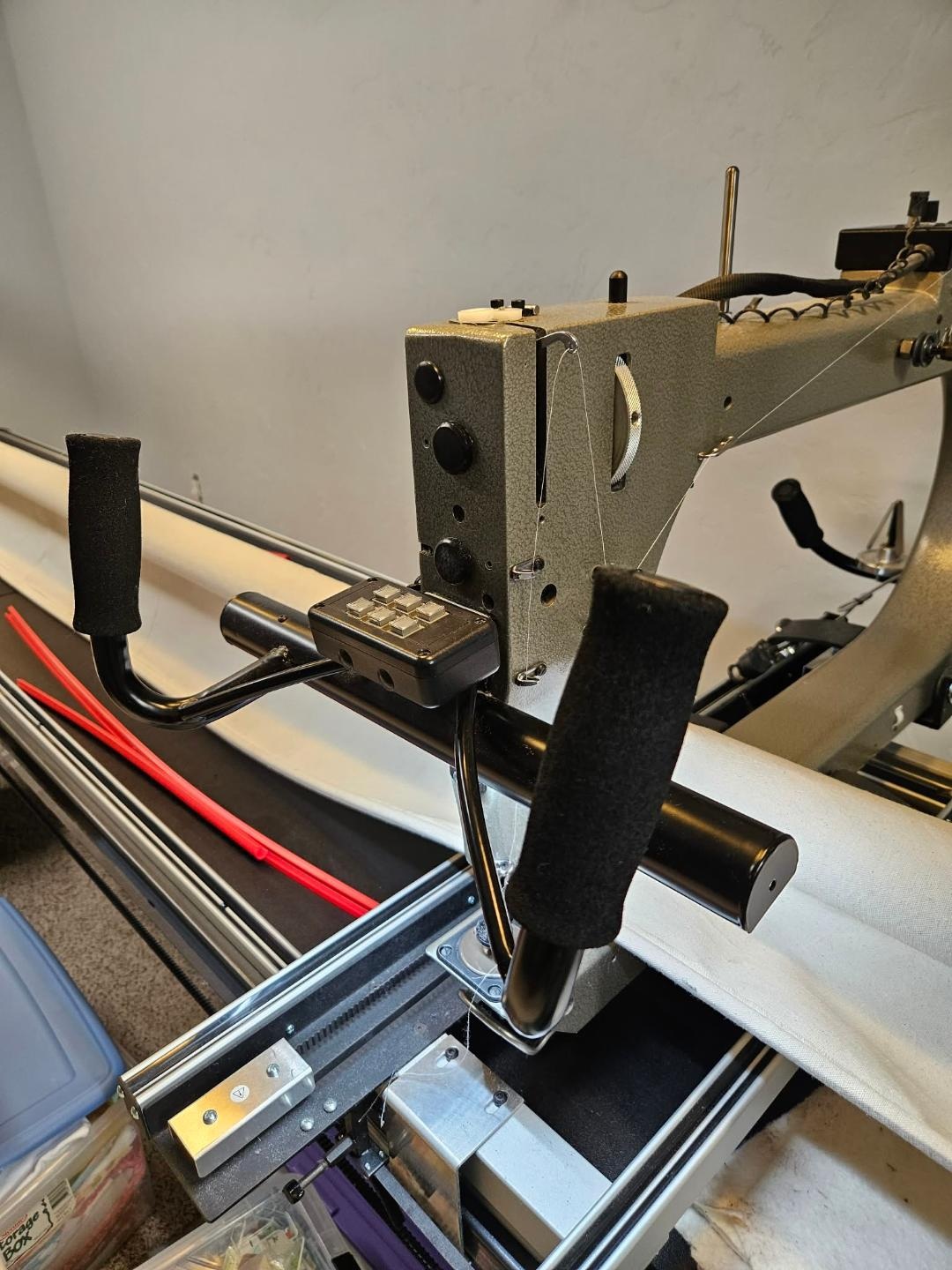 This is a 2015 Gammill Vision 2.0 18-8 (18 inch throat) machine on a 12 foot table. Included are – stitch length regulator, overhead light bar, assorted hopping feet, bobbin winder and bobbins, zipper leaders, and all standard accessories. This machine has been lightly used for my personal use and has been regularly maintained. This machine is set up and ready for you to give it a test drive! Purchaser is responsible for take down, pickup, transportation, re-assembly and all associated costs.