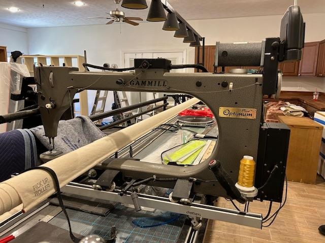 This is a 2003 Gammill Optimum Plus (30 inch throat) machine on a 14 foot table with the Statler computerized system. Included are – stitch length regulator, Breeze track system, overhead light bar, stand alone bobbin winder and other standard accessories. The Statler was added in 2021 and is running Creative Studio V 7.3.0, Mod G3 Controller and a Windows 10 Dell Computer. This machine has been running almost daily with no problems. Purchaser is responsible for take down, pickup, transportation, re-assembly and all associated costs.