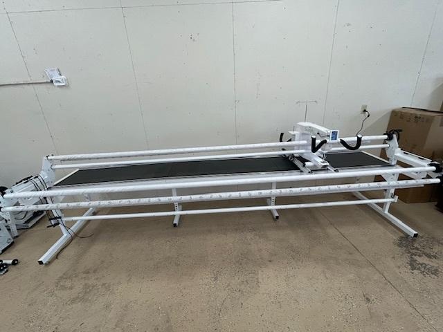 This is a (Grace) Q'nique 21 (21 inch throat) machine on a 12 foot Continuum table/frame. Included are – stitch length regulator, assorted hopping feet, ruler base, cloth leaders, side clamps, channel locks and more. The Quilter’s Creative Touch software is the Pro version and includes a tablet. This machine is in excellent condition. Purchaser is responsible for takedown, pickup, transportation, reassembly and all associated costs.